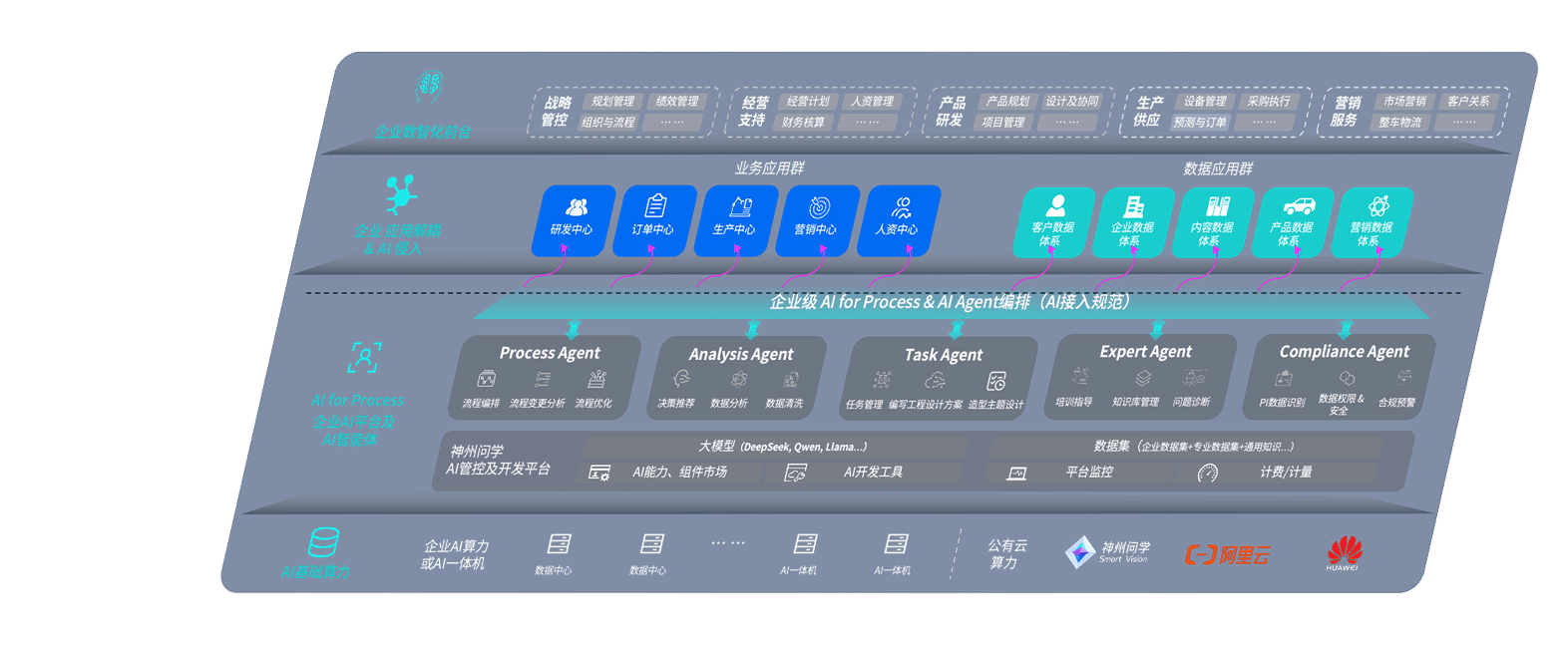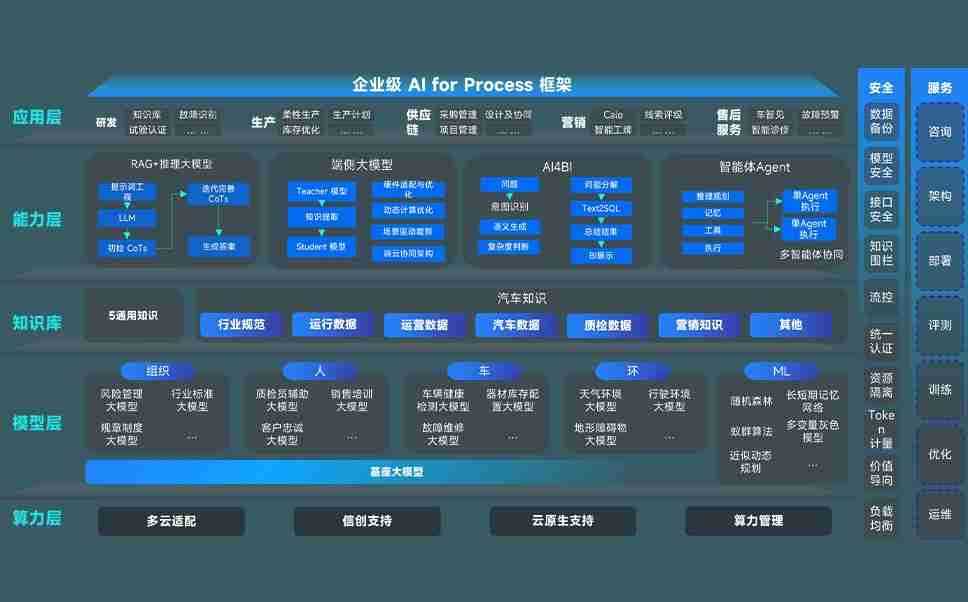 端到端的一站式AI工作空间深度融合了从企业战略规划到日常经营的全流程业务板块,,,,定向解决车企内部领域多、、、、部门多、、链条长、、、场景碎片化等难题,,,,支持车企快速构建以AI为核心的生产力写作体系,,,实现任务执行与AI能力的无缝集成与交互